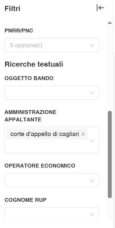NB per la ricerca dei contratti relativi alla Corte d'Appello di Cagliari nel portale BDNCP, inserire il filtro "Corte d'Appello di Cagliari" come in esempio.